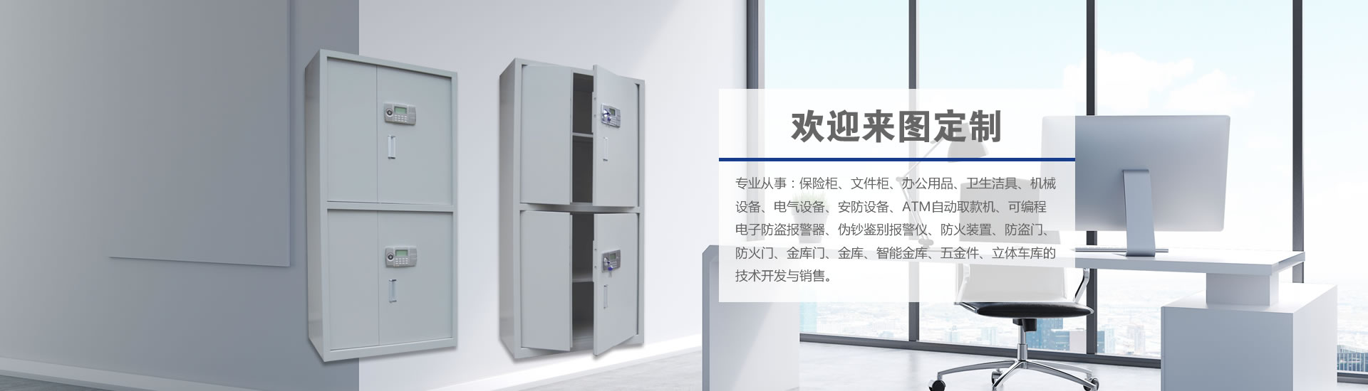 ? 專業(yè)從事:保險(xiǎn)柜、文件柜、辦公用品、衛(wèi)生潔具、機(jī)械設(shè)備、電氣設(shè)備、安防設(shè)備、ATM自動(dòng)取款機(jī)、可編程電子防盜報(bào)警器、偽鈔鑒別報(bào)警儀、防火裝置、防盜門、防火門、金庫門、金庫、智能金庫、五金件、立體車庫的技術(shù)開發(fā)與銷售
